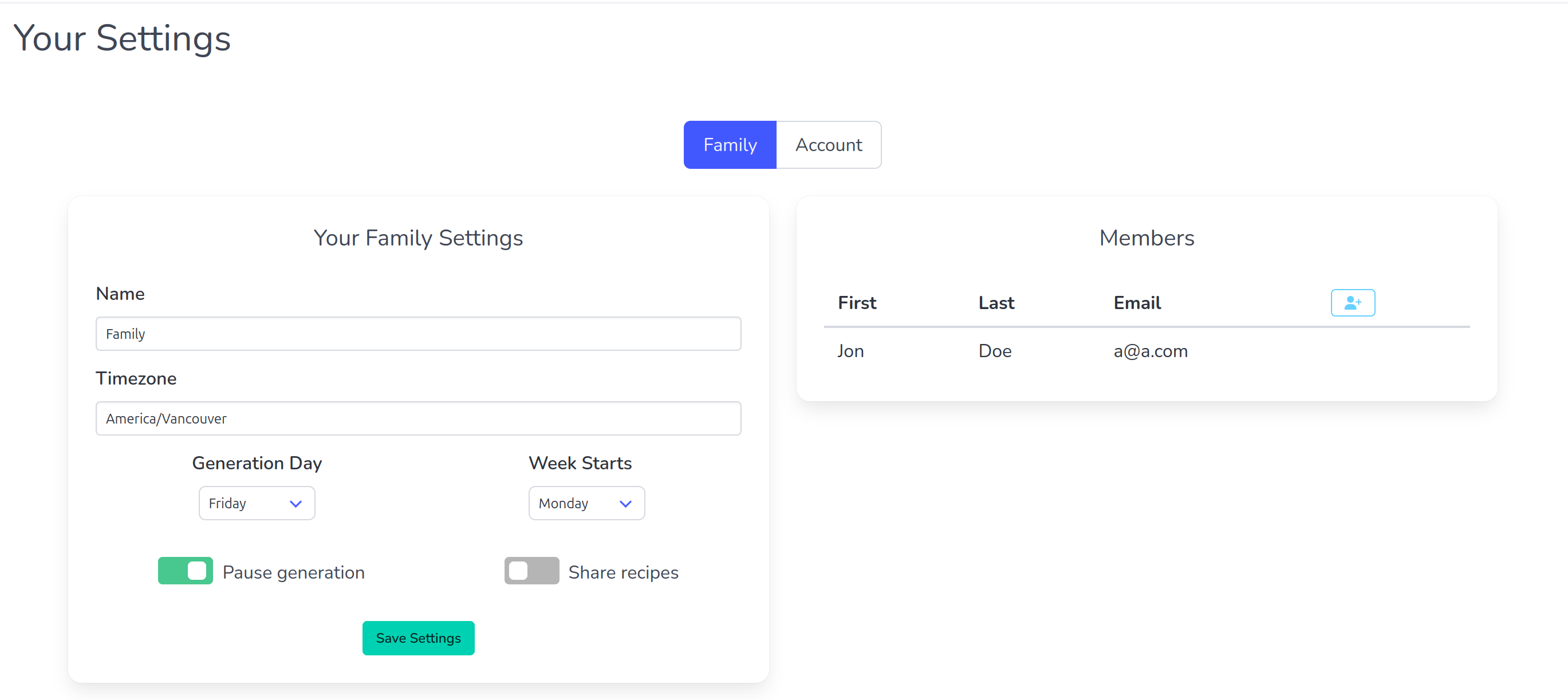 Cooking and meal planning work best as a team effort. With Family Groups, one person creates a family and invites others to join. Once connected, everyone shares the same digital recipe book, weekly meal plan, and shopping list.